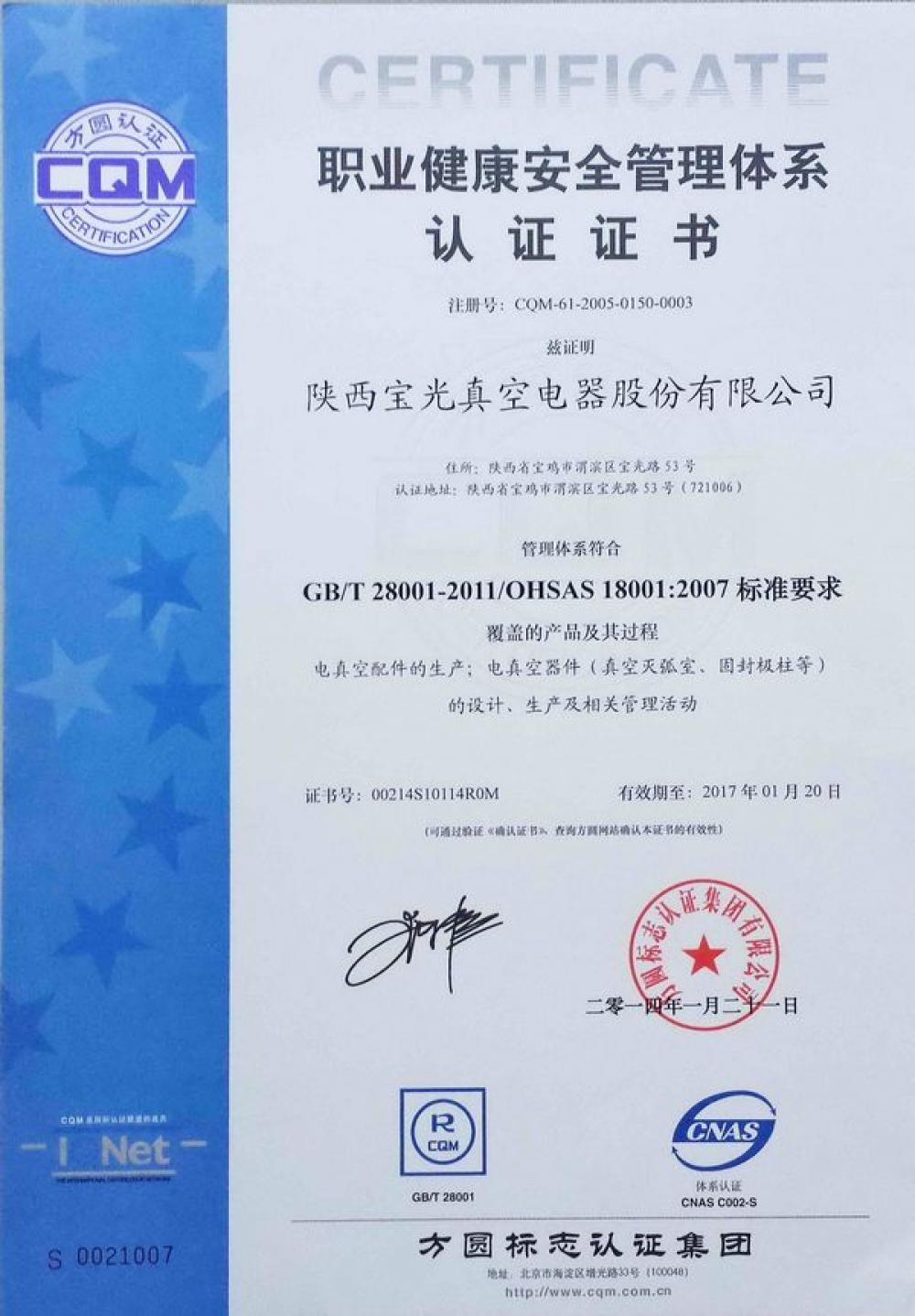 - 2014年通過OHSAS 18001:2007職業健康安全管理體系認證