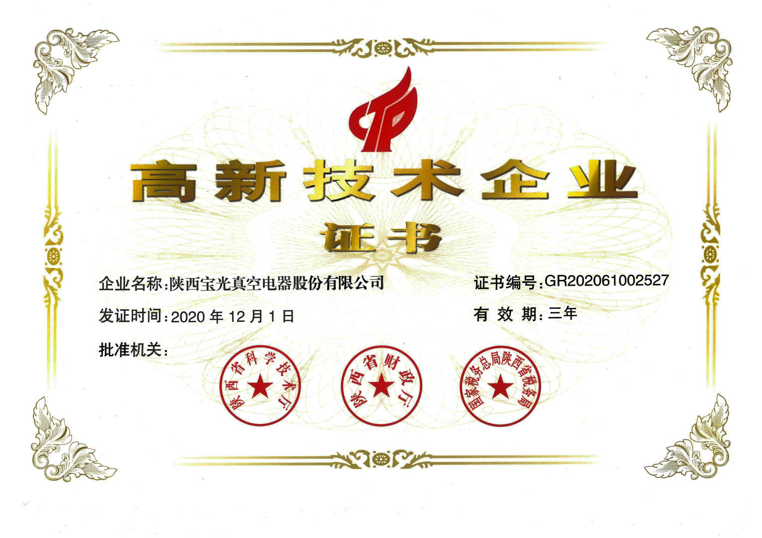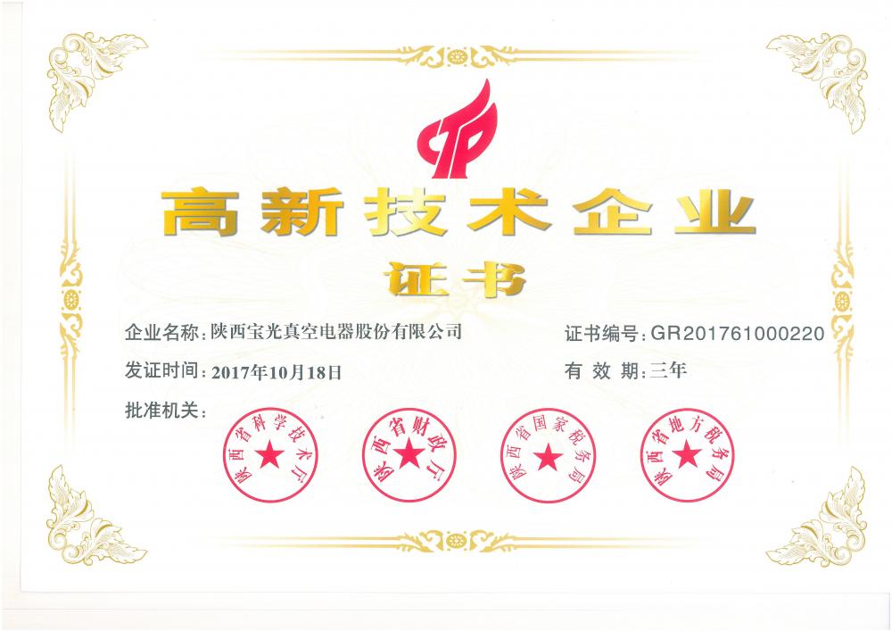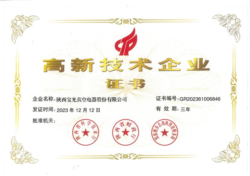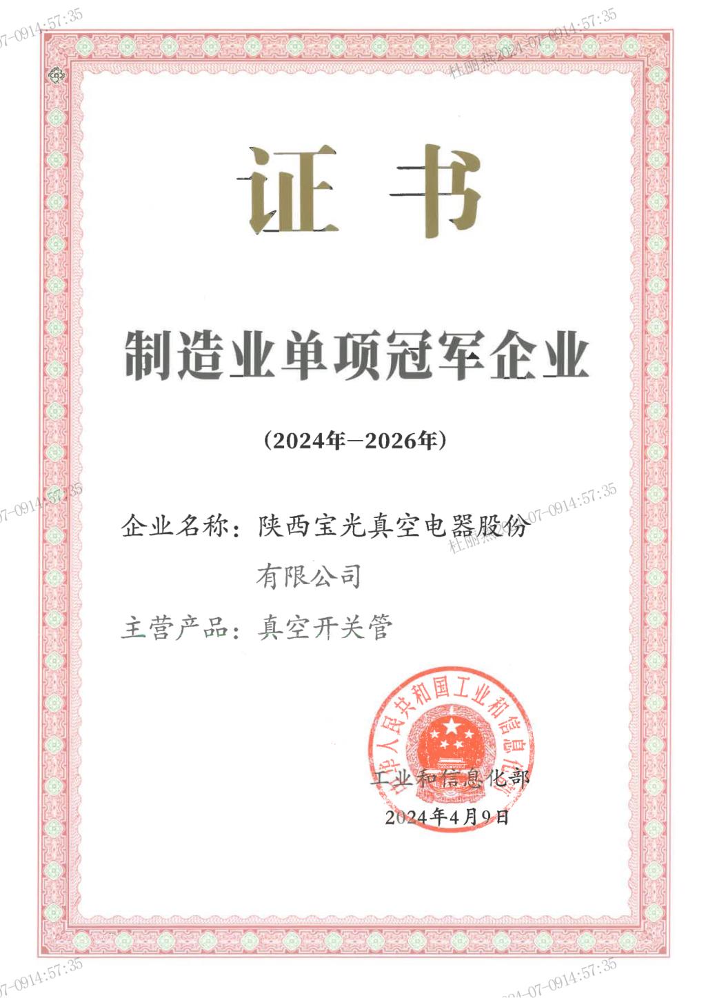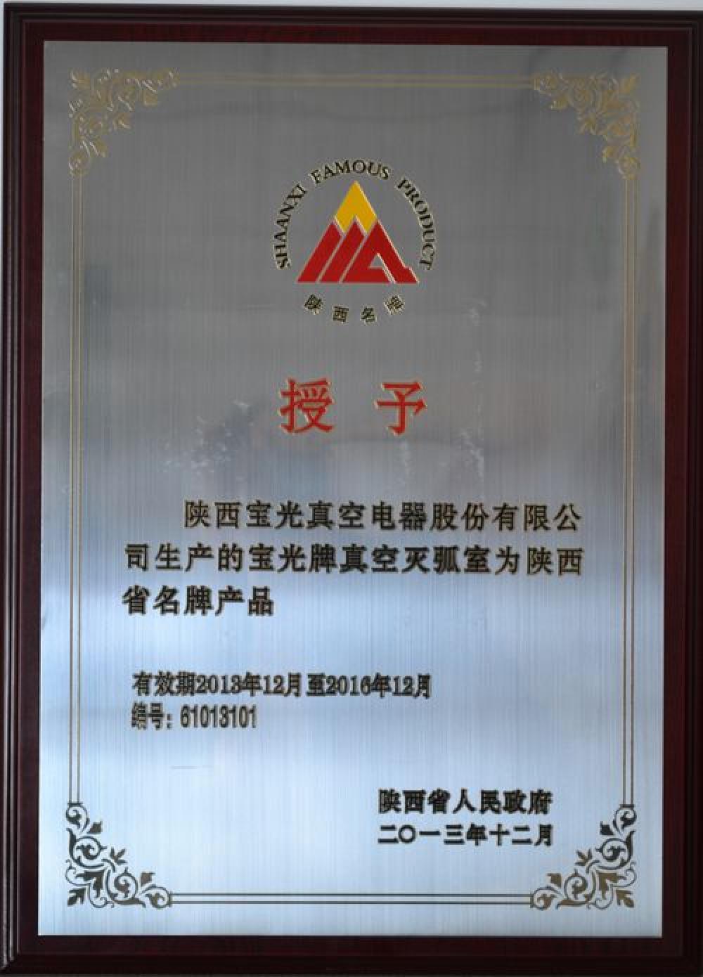 - 寶光牌真空滅弧室被授予陜西省名牌產品稱號