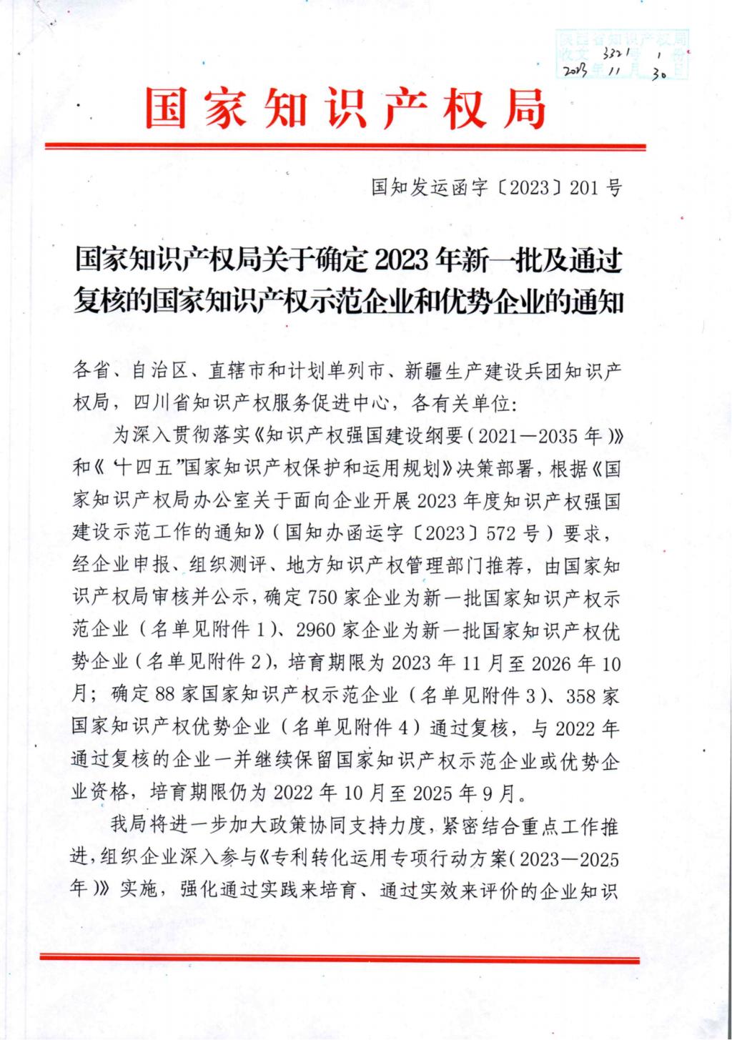 - 2023年榮獲國家知識產權示范企業和優勢企業
