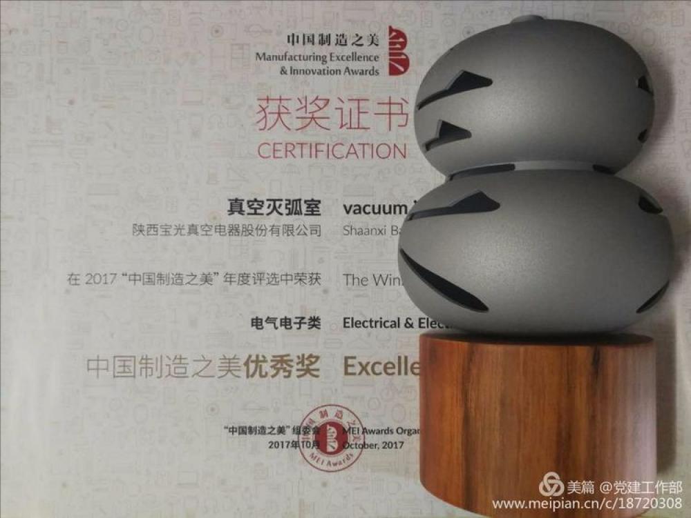 - 真空滅弧室榮獲中國制造之美優秀獎