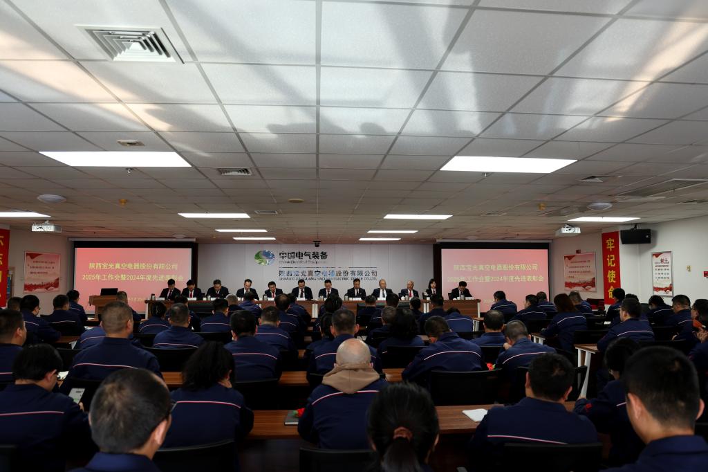 寶光股份黨委書記、董事長謝洪濤作題為《主業突出提質效 科技創新譜新篇 轉型升級走出去 全力以赴促發展》工作報告;寶光集團黨委副書記、總經理孫博傳達學習中國電氣裝備集團、中國西電集團2025年工作會會議精神;寶光股份黨委副書記、總經理劉壯主持會議并作總結講話;寶光股份紀委書記、工會主席姚書勤宣讀寶光股份2024年度先進個人及集體表彰決定。