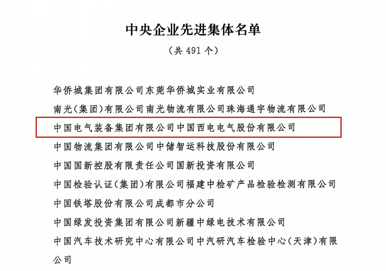 中央企業(yè)先進(jìn)集體和勞動(dòng)模范每5年評(píng)選一次,是國務(wù)院國資委系統(tǒng)的最高級(jí)別榮譽(yù)。在中華人民共和國成立75周年之際, 為表彰先進(jìn),樹立典型,進(jìn)一步激勵(lì)中央企業(yè)廣大職工在全面推動(dòng)國資央企高質(zhì)量發(fā)展的新征程中建功立業(yè),最終由人力資源社會(huì)保障部、國務(wù)院國資委聯(lián)合表彰。此次榮獲“中央企業(yè)先進(jìn)集體”稱號(hào),不僅是對(duì)西電近年來辛勤耕耘和不懈努力的肯定,更是對(duì)其在科技創(chuàng)新、產(chǎn)業(yè)發(fā)展和社會(huì)責(zé)任等方面取得顯著成績的表彰。西電將以此次榮獲“中央企業(yè)先進(jìn)集體”稱號(hào)為契機(jī),進(jìn)一步加大科技創(chuàng)新力度,提升產(chǎn)業(yè)發(fā)展水平,積極履行社會(huì)責(zé)任,為建設(shè)世界一流企業(yè)貢獻(xiàn)西電力量!
