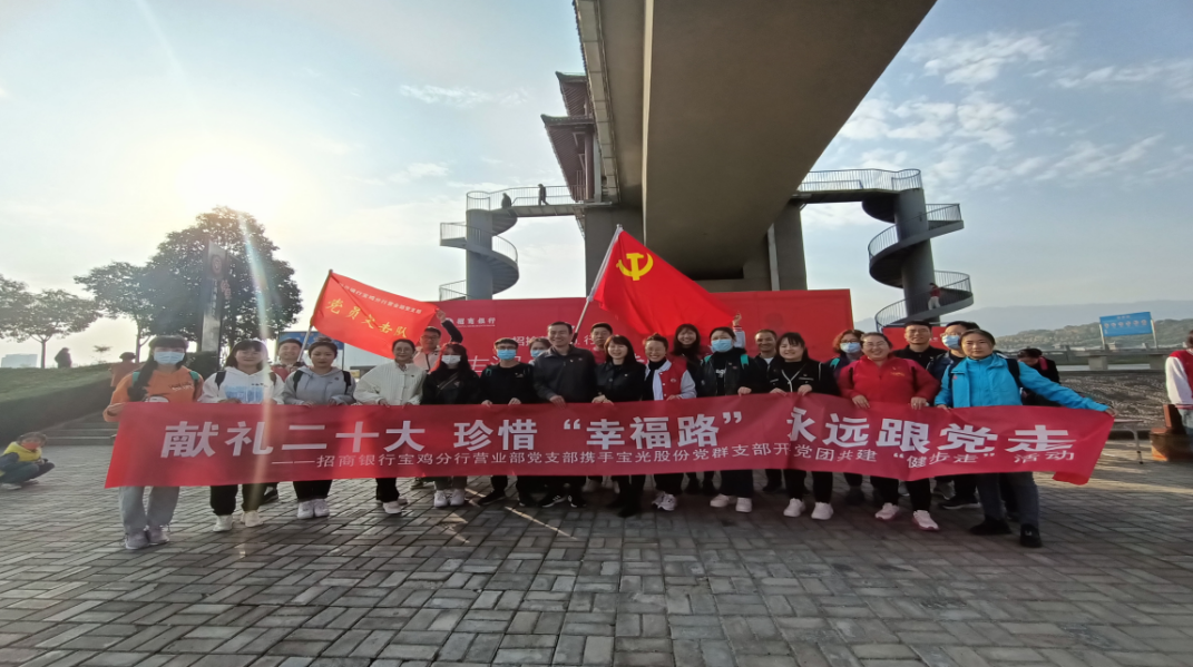 秋日暖陽,金風(fēng)送爽,為慶祝黨的二十大勝利召開,豐富職工文化生活,10月22日上午,寶光股份黨群黨支部與招商銀行寶雞分行營業(yè)部黨支部攜手開展黨團共建“健步走”活動,黨群黨支部近20名黨員群眾參加了活動。