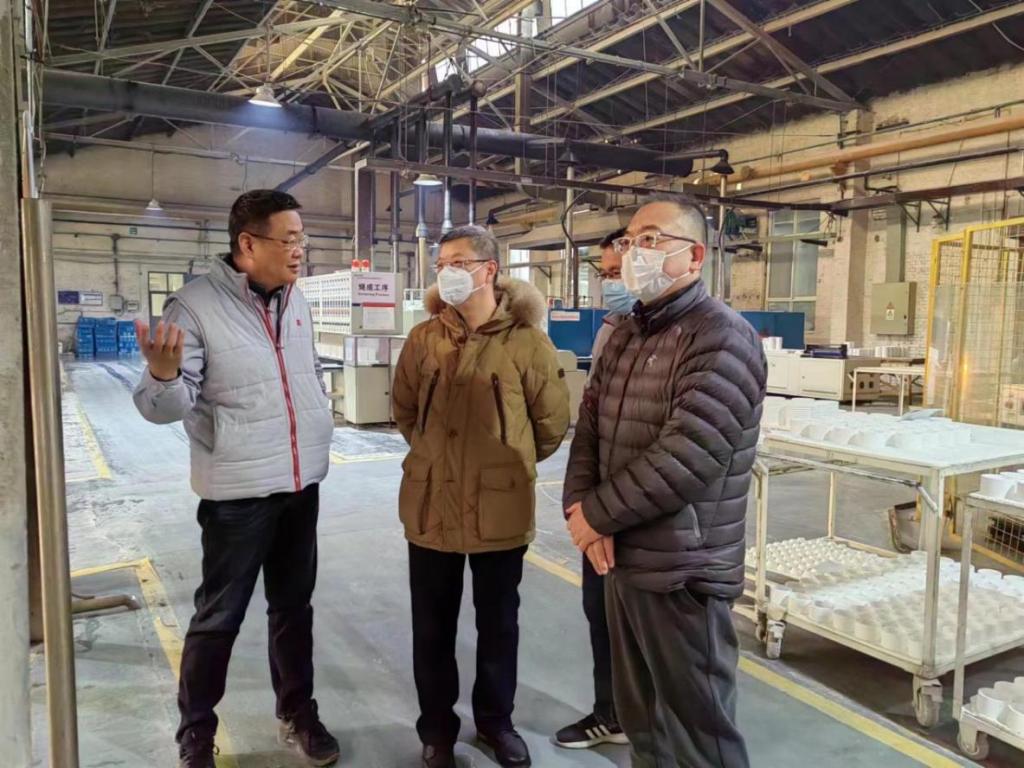 隨后,一行人在來(lái)到會(huì)議室與管理團(tuán)隊(duì)進(jìn)行溝通交流,陶瓷科技負(fù)責(zé)人閻濤介紹了子公司春節(jié)期間的生產(chǎn)情況,并闡述了一季度初步工作安排。袁軍為結(jié)合實(shí)際指出,子公司要以白瓷自動(dòng)車(chē)坯線、白瓷窯爐智能制造和擴(kuò)產(chǎn)項(xiàng)目為契機(jī)進(jìn)一步提高產(chǎn)能,靈活調(diào)整產(chǎn)品結(jié)構(gòu),確保內(nèi)配產(chǎn)品市場(chǎng)份額,擴(kuò)大外銷(xiāo)收入和盈利能力,爭(zhēng)取在軍品和高端產(chǎn)品銷(xiāo)售再上臺(tái)階。